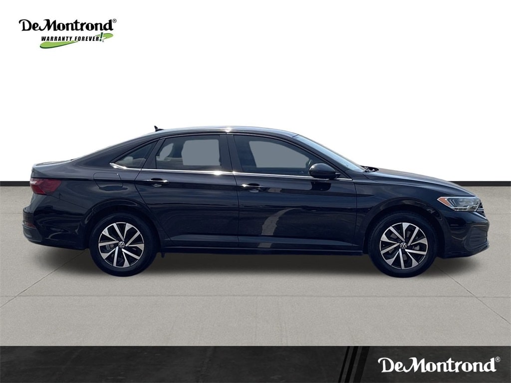 Looking for a stylish, efficient, and safe sedan? This 2023 VW Jetta 1.5T S delivers with modern technology, a sleek design, and Volkswagenâs renowned reliability. Finished in Deep Black Pearl with Black Cloth interior, this Jetta blends comfort, safety, and performance into one attractive package.